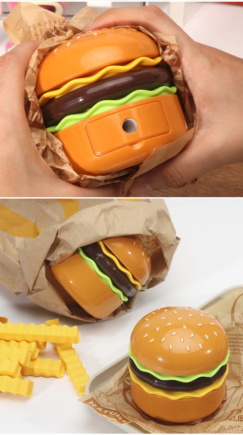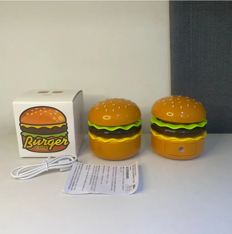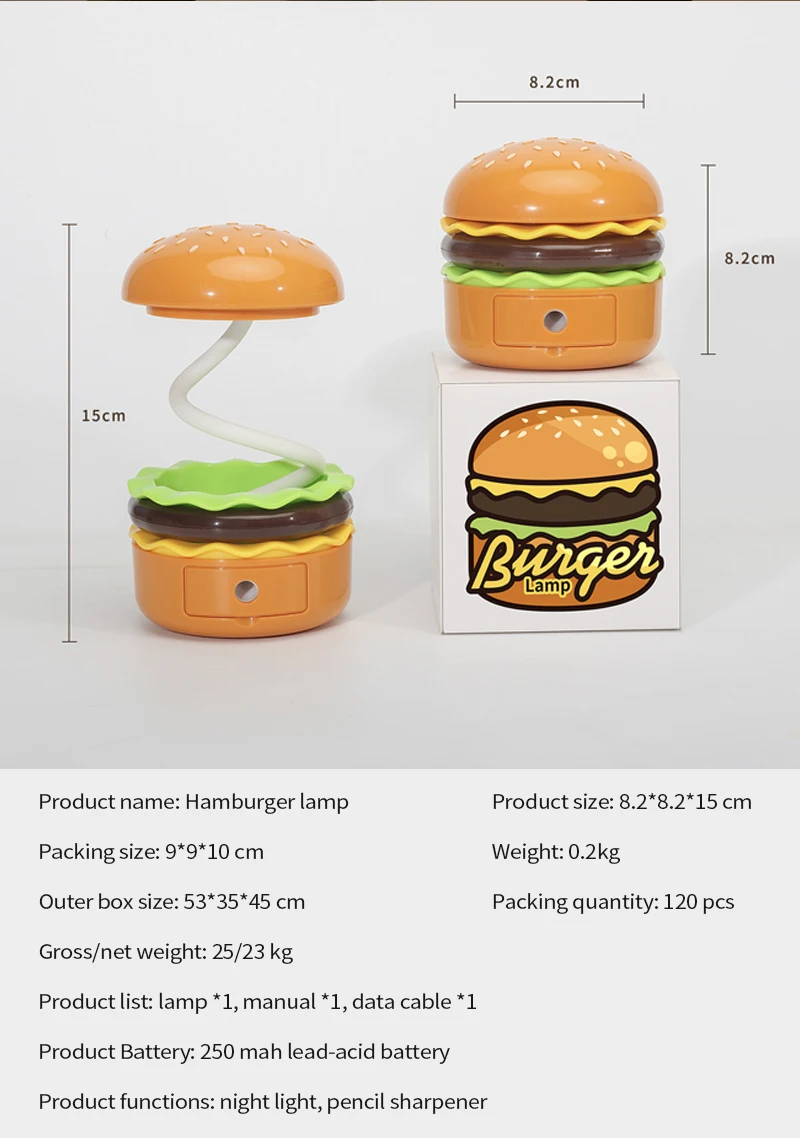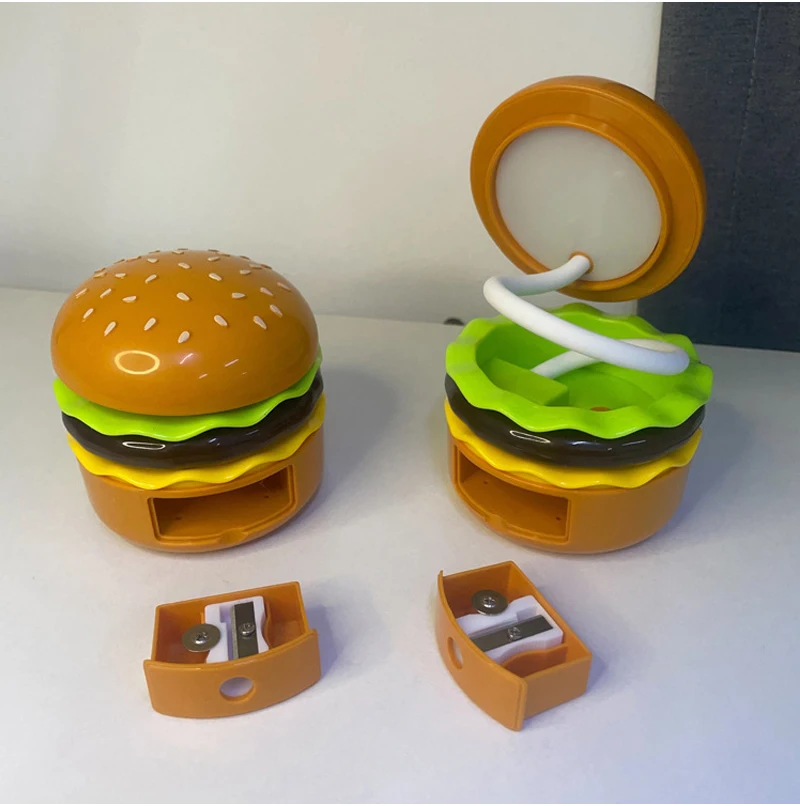 Cette veilleuse LED sur le thème du hamburger combine un taille-crayon, un espace de rangement et une lampe de bureau réglable pour étudier ou lire. Fonctionne à piles.